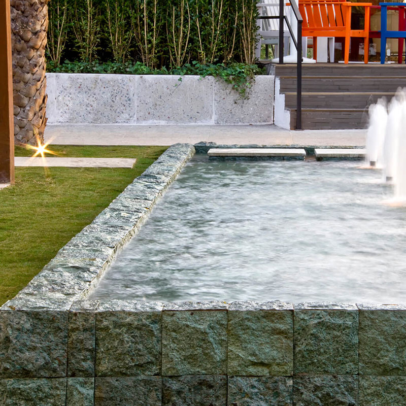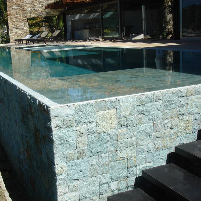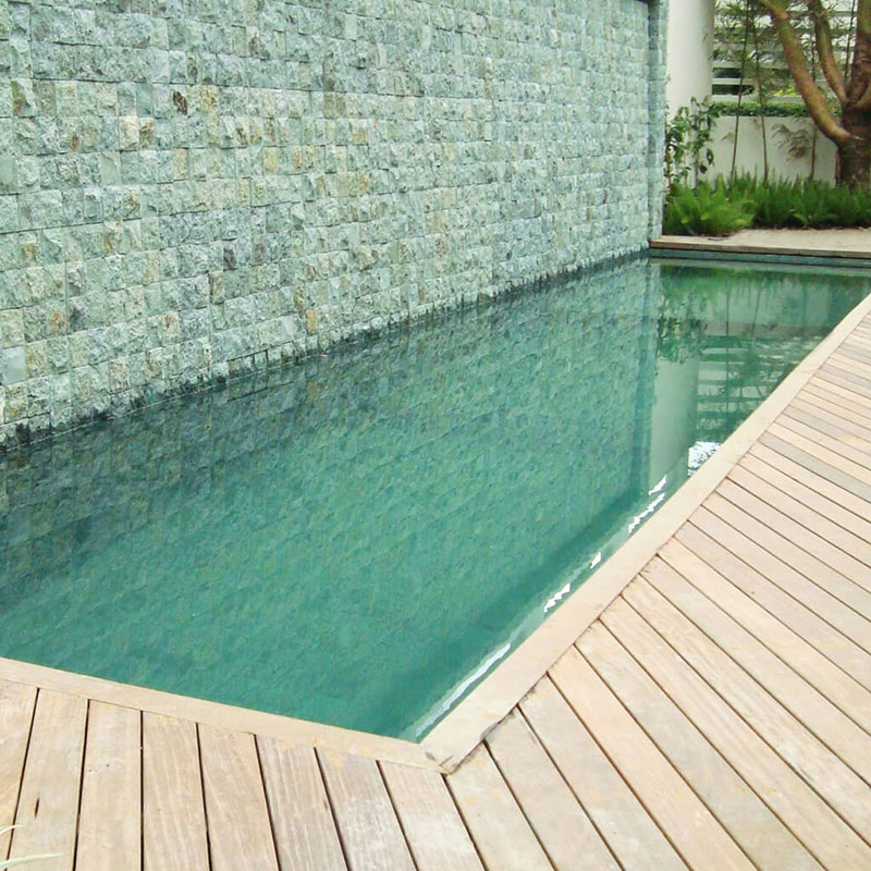 Trazida da Indonésia pela Ikê, a Hijau é uma rocha natural ideal para revestir piscinas e áreas úmidas. Seus fascinantes tons e nuances verdes, inspirados nas cores do oceano índico, convidam a um mergulho relaxante. O efeito visual é criado pela interação da rocha com a água e pela intensidade da luz solar, que realça os minerais presentes, proporcionando uma aparência deslumbrante na superfície. A Hijau possui propriedades demineralizantes, a rocha possui a capacidade de retirar os metais pesados da água, tornando o banho revigorante e relaxante.